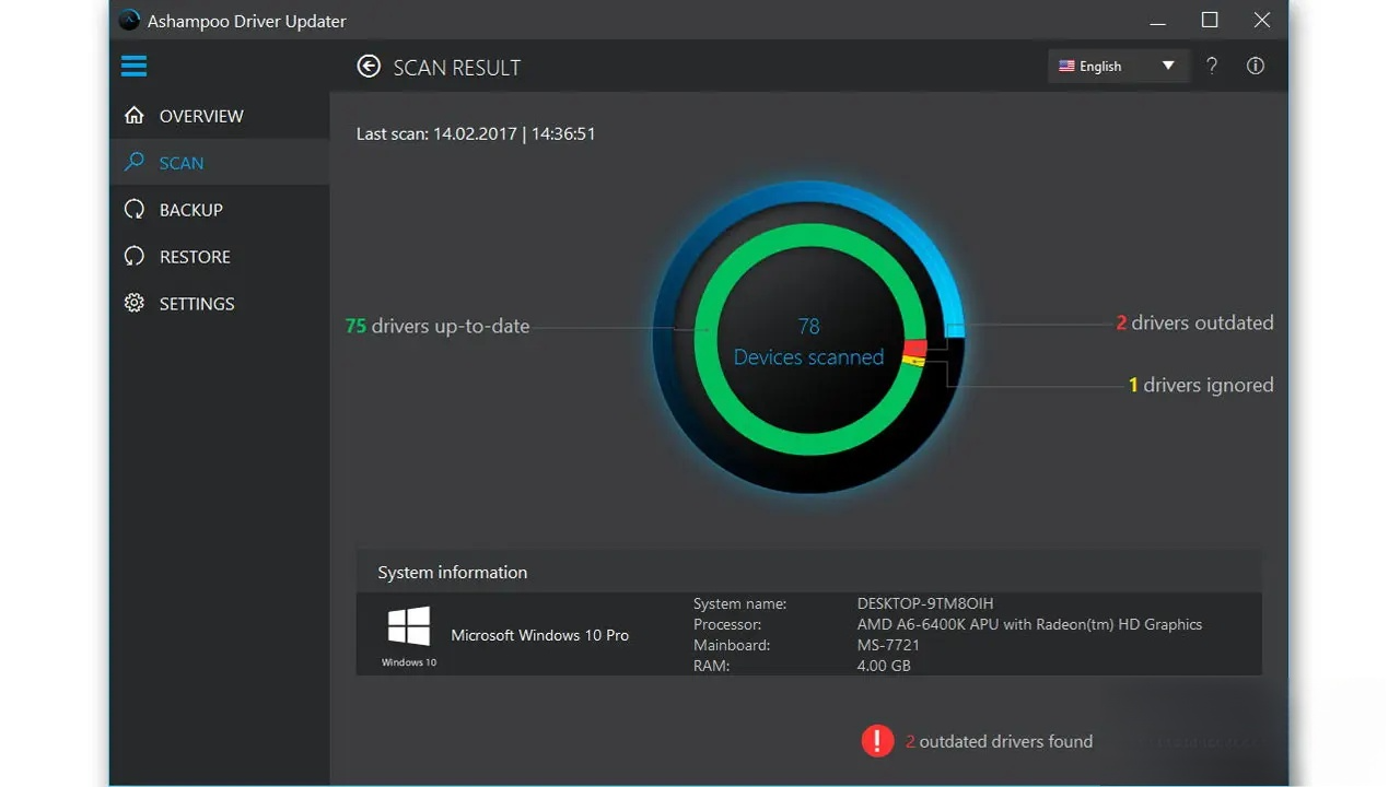 Ashampoo Driver Updater 基于其开发商维护的互联网数据库运行。该数据库包含超过 40 万个驱动程序,涵盖超过 15 万种设备。Ashampoo Driver Updater 还具备创建和恢复驱动程序备份的功能,并能根据设定的计划更新驱动程序。