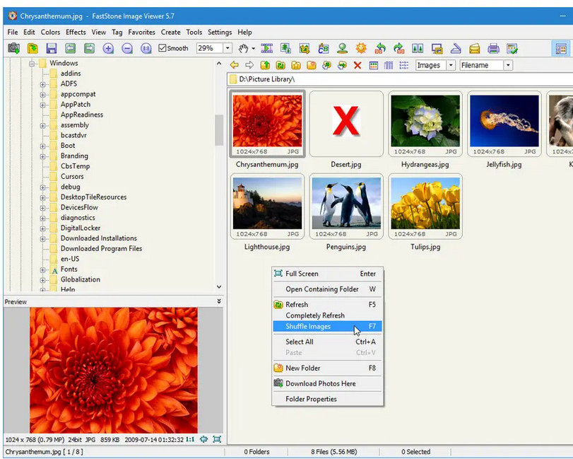 图像浏览器和查看器,具有类似 Windows 资源管理器的熟悉用户界面